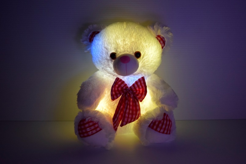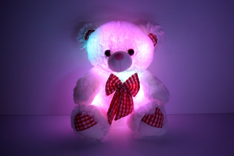 • The teddy bear lights up with beautiful slow smooth Auto Color Rotation